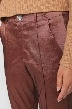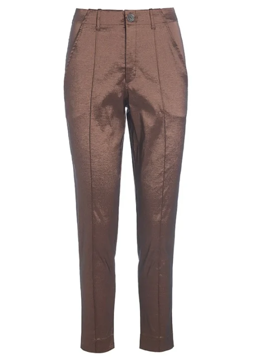 Bukser med smalle ben og et lækkert metallisk shine, der gør dem oplagte at bruge som et glamourøst indslag i hverdagen tilsat en t-shirt eller rullekravebluse såvel som til en middag i byen kombineret med en elegant skjorte og høje hæle.Modellen på billede er 178 cm og iført str. SFuld længde i str. S, ca. 97 cm