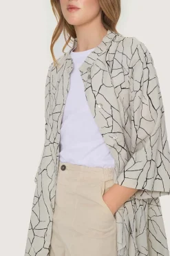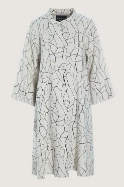 Frakkekjole med et enkelt snit og en rummelig pasform. Frakkekjolen er udført i en lækker hørkvalitet, som falder blødt om kroppen og gør frakkekjolen særdeles behagelig at have på. Frakkekjolen er forsynet med et enkelt og organisk mønster, der giver den et stilrent, grafisk udtryk.Modellen på billede er 180 cm og iført str. SFuld længde i str. S, ca. 104 cm.