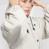 Denne frakke er et virkelig lækkert bud på overtøj til de kølige forårsdage. Du undgår kolde ører, for hætten slutter godt til. Det samme gør ærmerne – ingen kold vind slipper ind. Bæltet i taljen giver en flot og slank silhuet.Modellen på billede er 174 cm og iført str. SFuld længde i str. S, ca. 109 cm.