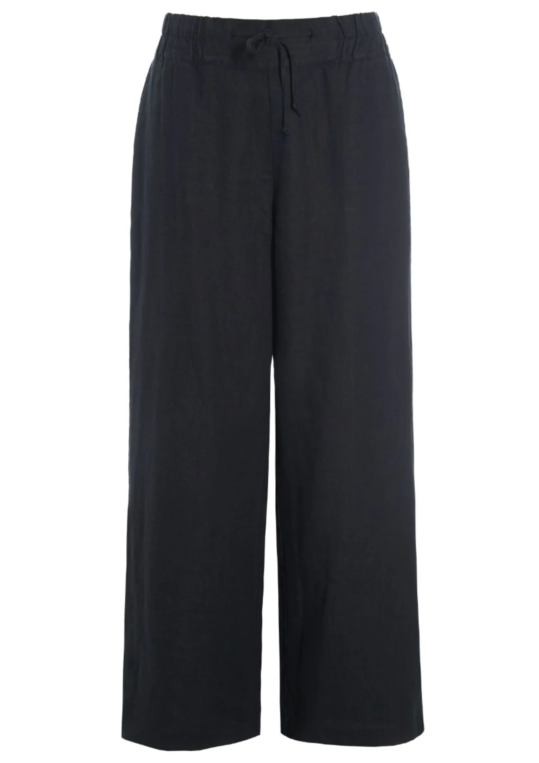 Brede bukser i en lækker hørkvalitet. Bukserne sidder flot til i taljen. Det kræver ikke andet end en enkel t-shirt eller en knitrende hvid skjorte, så har du et elegant og tidløst outfit.Modellen på billede er 178 cm og iført str. SLængde målt fra taljen i str. S: ca. 106 cm.