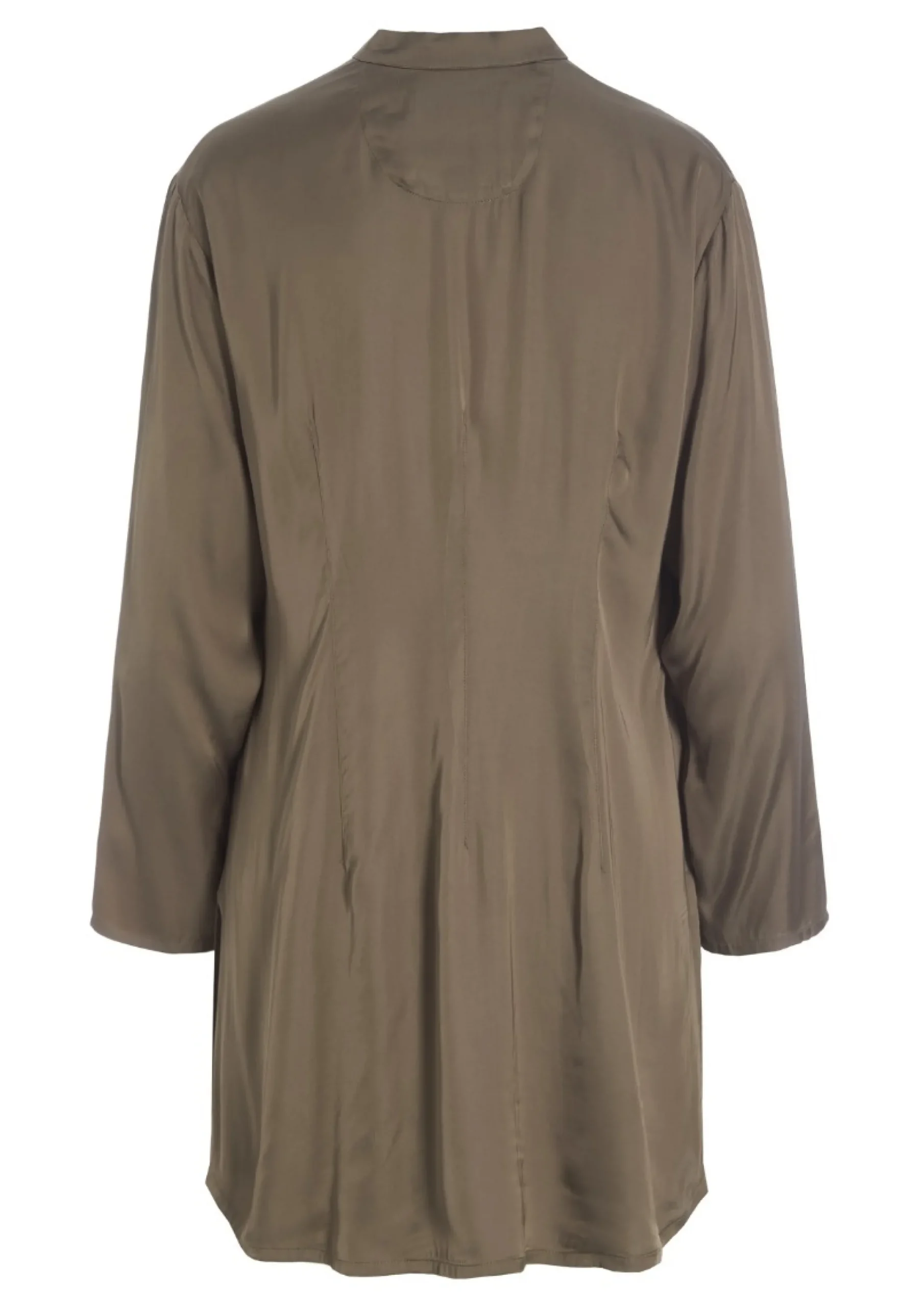 Så enkel og så smuk. Denne skjorte er minimalistisk og uden andre detaljer end den fine kinakrave. Det gør den tidløs og yderst let at kombinere med enhver underdel.Modellen på billede er 178 cm og iført str. SFuld længde i str. S, ca. 84 cm.