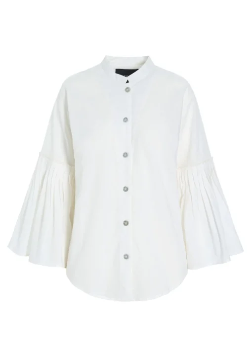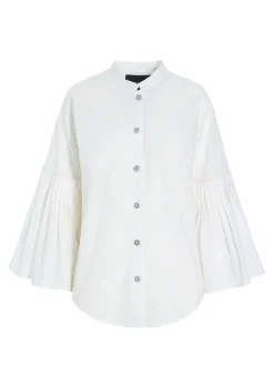 ærmerne med de smukke, voluminøse flæser gør denne skjorte til noget helt særligt. Skjorten vil opgradere enhver basisunderdel, og den kan bruges både til hverdag med jeans og til en middag i byen tilsat en nederdel og høje hæle.Modellen på billede er 178 cm og iført str. SFuld længde i str. S, ca. 72 cm.