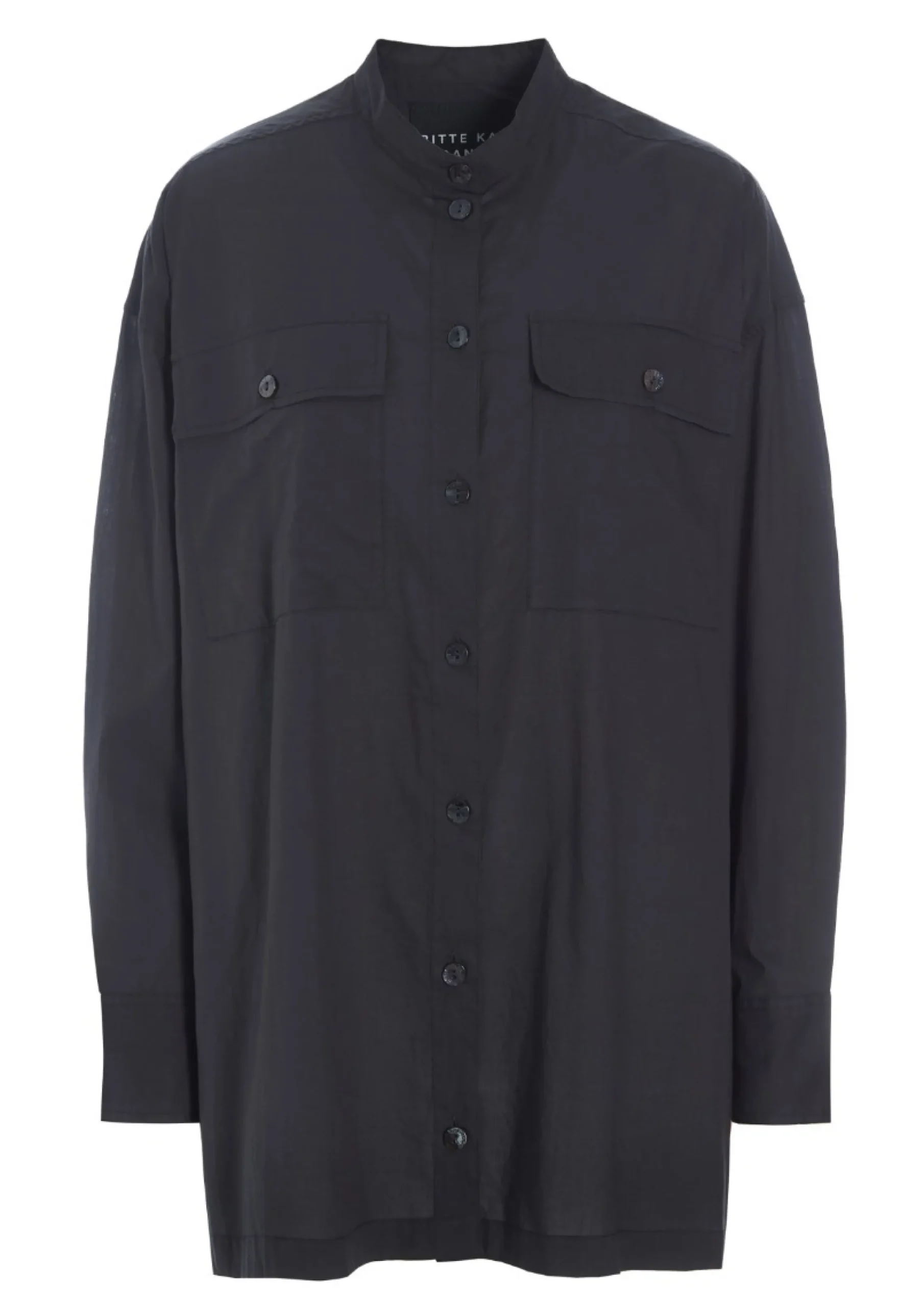 En stor skjorte med brystlommer, kinakrave og slidser i siden. Den vil være et sikkert basiselement i enhver garderobe og kan bruges på et utal af måder. Sæt den til jeans, bukser med brede ben eller en kort nederdel.Modellen på billede er 178 cm og iført str. SFuld længde i str. S, ca. 79 cm.