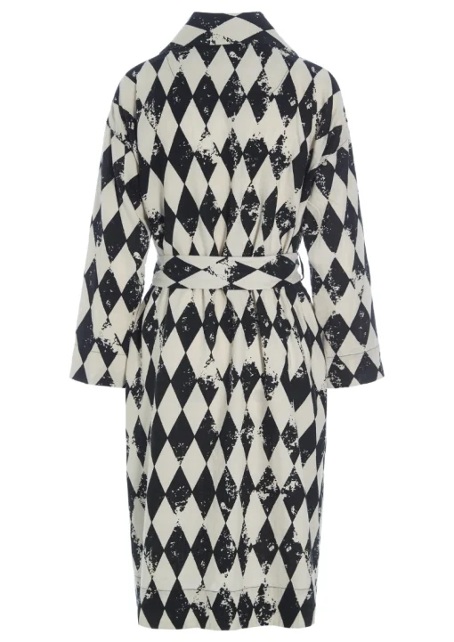 Meget klædelig og opsigtsvækkende jakke med et effektfuldt Harlequin-print. Jakkens bælte markerer taljen og giver en flot silhuet. Brug den til at give et ensfarvet basissæt karakter. Eller sæt den sammen med andre print for et personligt mønstermiks.Modellen på billede er 179 cm og iført str. SFuld længde i str. S, ca. 108 cm