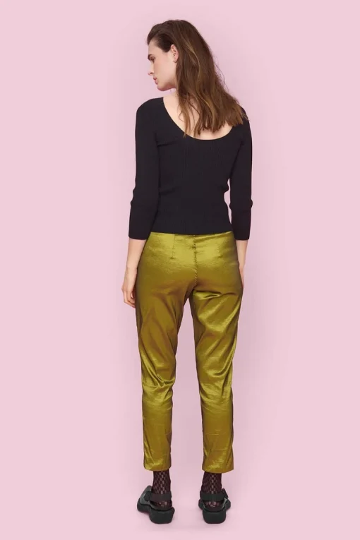 Bukser i et let shiny materiale. Bukserne har et klassisk snit med moderat smalle ben. De sidder flot til i taljen. Brug bukserne til at opgradere en hverdagsbluse. Eller bær dem til fest med en lækker top. Kombinerer du bukserne med den matchende Changeant Stretch frakkekjole, får du et elegant sæt.Modellen på billede er 180 cm og iført str. SLængde målt fra taljen i str. S: ca. 97 cm.