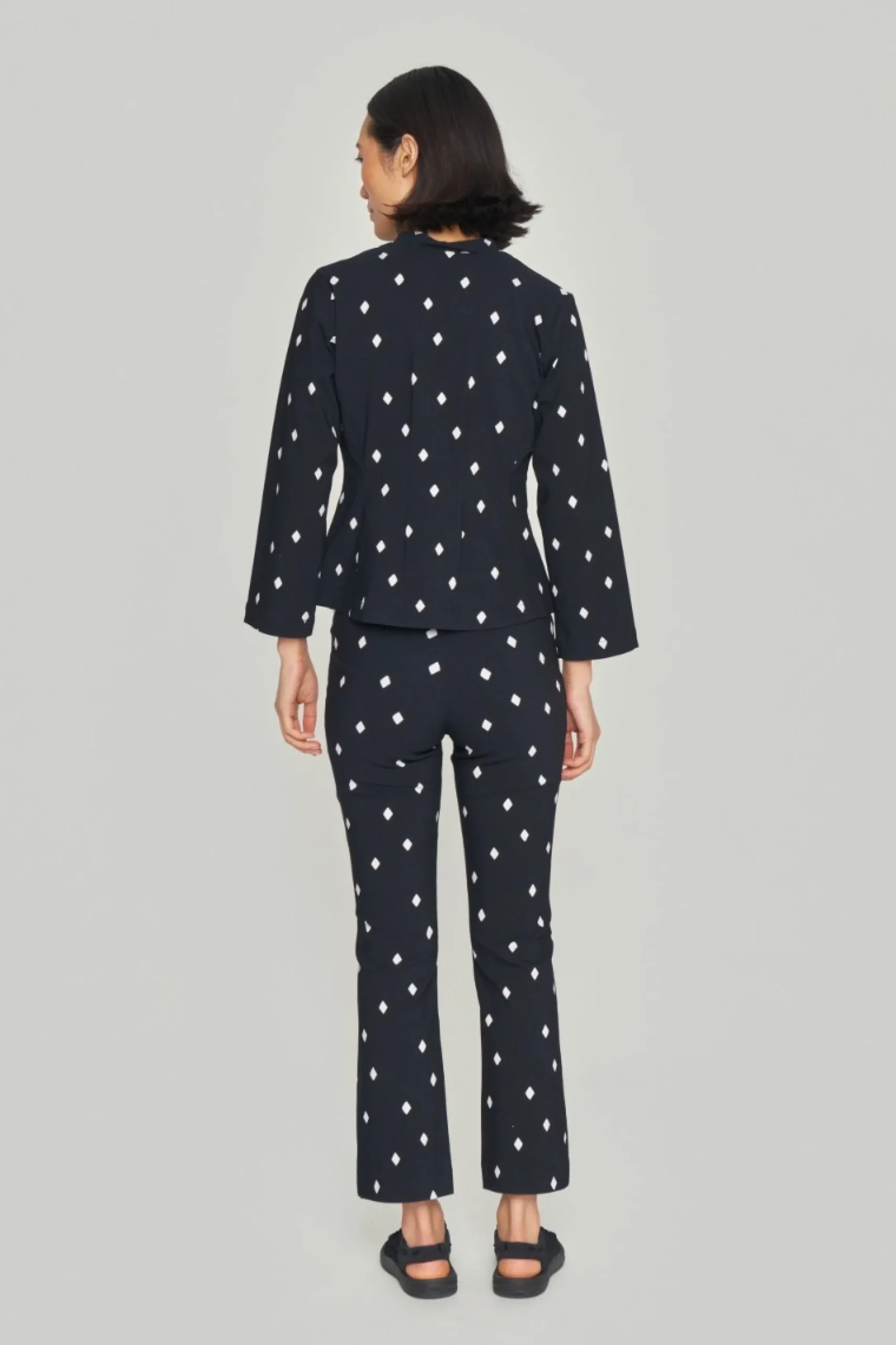 Velsiddende og enkel jakke, der giver en smuk, taljeret silhuet. Brug jakken med et par jeans og ballerinasko, en nederdel og sneakers eller kombiner den med Magic Stretch buksedragt, i ensfarvet eller i samme print.Modellen på billede er 178 cm og iført str. SFuld længde i str. S, ca. 65 cm.