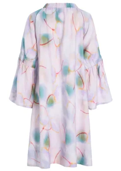 Kjole i lækker hørkvalitet med et kunstfærdigt print. Kjolen har brede flæser med masser af volumen på ærmerne, hvilket gør den flot og opsigtsvækkende. Brug kjolen med ballerinaer, flade sandaler eller sneakers.Modellen på billede er 178 cm og iført str. SFuld længde i str. S, ca. 99 cm.