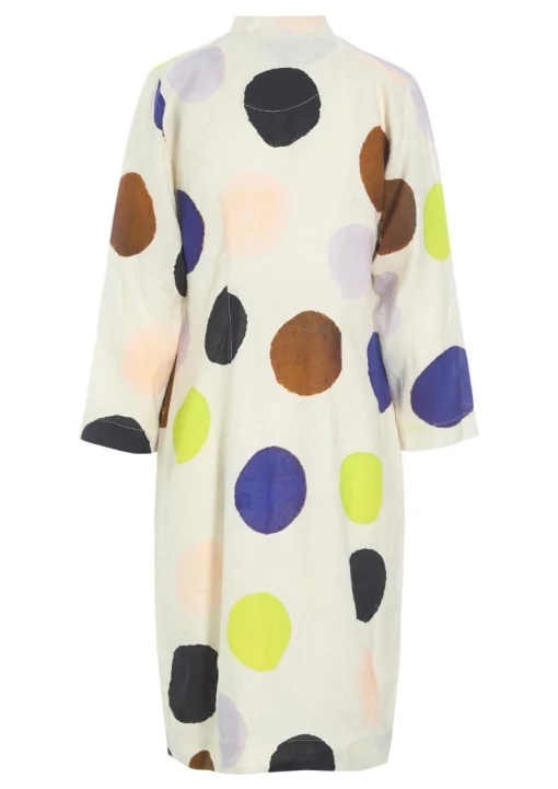 Det fine print og det enkle snit gør denne kjole særdeles klædelig og meget brugbar. Sæt flade sandaler eller sneakers til kjolen, eller drej den i en mere festlig retning med høje hæle og iøjnefaldende smykker.Modellen på billede er 178 cm og iført str. SFuld længde i str. S, ca. 104 cm.