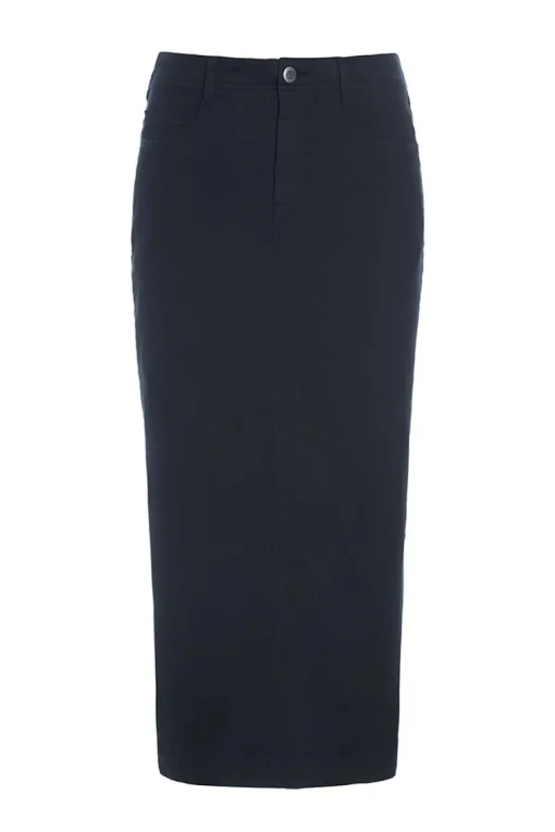 Nederdel med et snit som en klassisk denimnederdel. Nederdelen har et enkelt snit med en flatterende pasform. Der er tilsat stretch i stoffet, hvilket sikrer god bevægelighed.Modellen på billede er 180 cm og iført str. SLængde målt fra taljen i str. S: ca. 89 cm.
