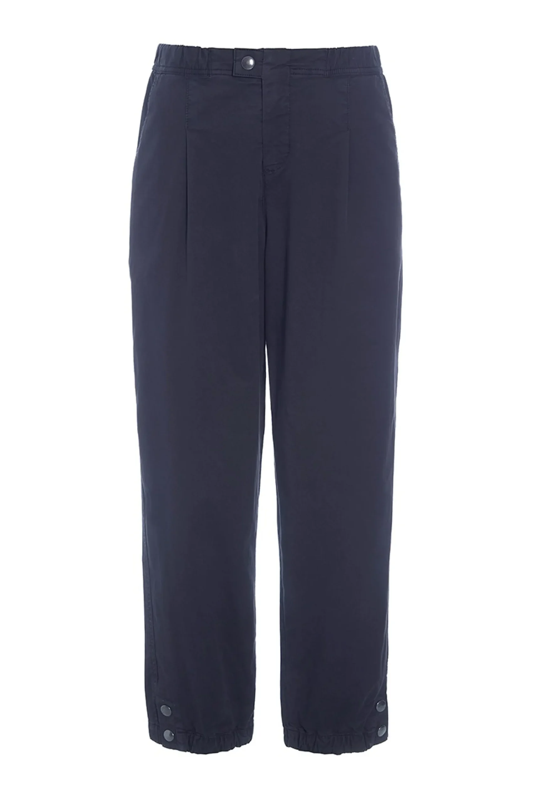 Bukserne har elastik både i taljen og ved anklerne, hvilket giver et let poset og casual udtryk. Bukserne kan sættes til alt lige fra rullekravebluse og skjorte til sweater.Modellen på billede er 180 cm og iført str. SLængde målt fra taljen i str. S: ca. 99 cm.