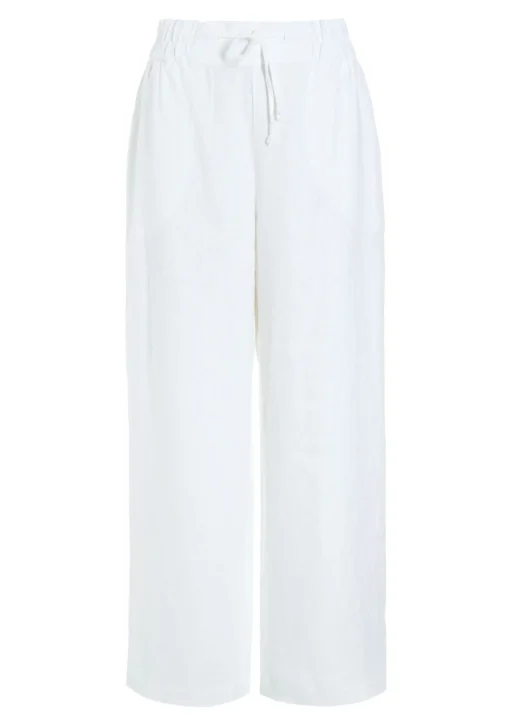 Brede bukser i en lækker hørkvalitet. Bukserne sidder flot til i taljen. Det kræver ikke andet end en enkel t-shirt eller en knitrende hvid skjorte, så har du et elegant og tidløst outfit.Modellen på billede er 178 cm og iført str. SLængde målt fra taljen i str. S: ca. 106 cm.
