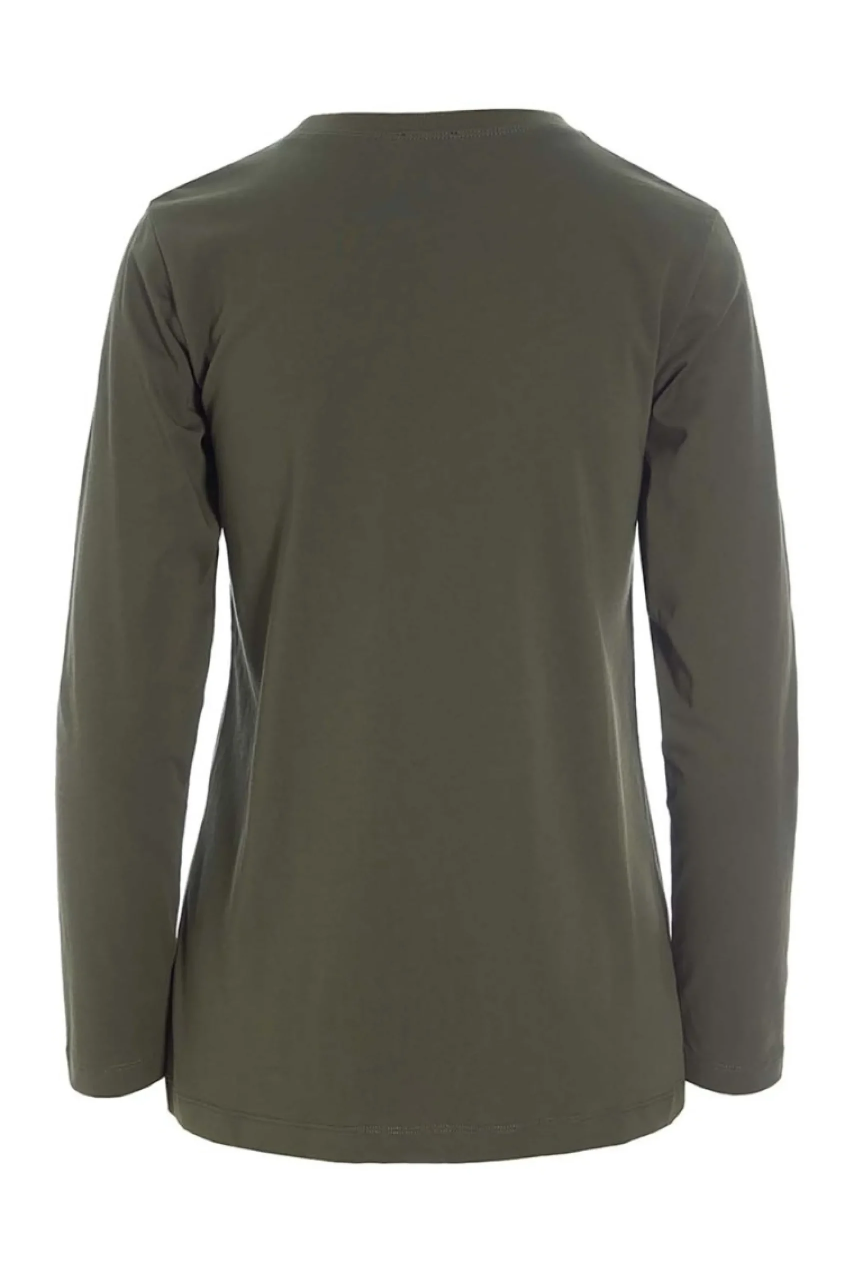 Enkel og lækker basisbluse med lange ærmer. Den er produceret i ren økologisk bomuld af høj kvalitet, hvilket gør, at den sidder godt og holder formen.Modellen på billede er 180 cm og iført str. SFuld længde i str. S, ca. 66 cm.
