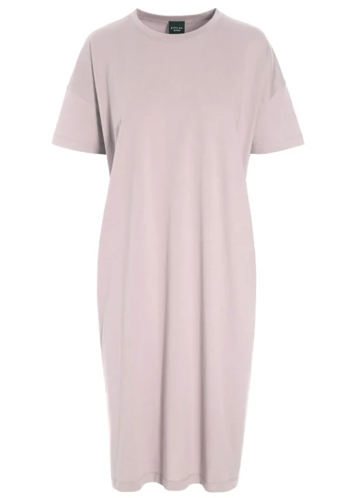 Kjole i blød jersey kvalitet af ren økologisk bomuld. Kjolen har et super enkelt, let løstsiddende snit, og den falder meget klædeligt om kroppen.Modellen på billede er 178 cm og iført str. SFuld længde i str. S, ca. 104 cm.