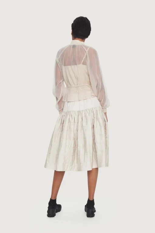 Elegant og transparent bluse med justerbar elastik i livet, hvilket skaber en flot markering af taljen. Blusen har voluminøse ærmer, og det lette materiale falder smukt. Brug blusen med en top under, eller lad dit lingerie komme til syne gennem det lette materiale.Modellen på billede er 180 cm og iført str. SFuld længde i str. S, ca. 54 cm.